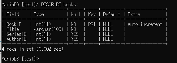 > DESCRIBE books;