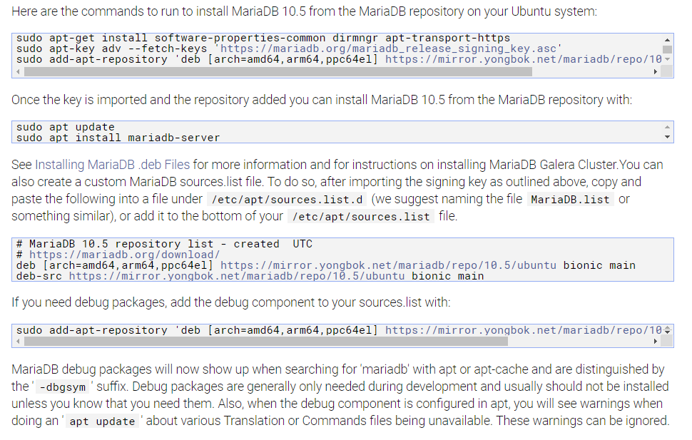 $ sudo add-apt-repository 'deb [arch=amd64,arm64,ppc64el] https://mirror.yongbok.net/mariadb/repo/10.5/ubuntu bionic main/debug'
