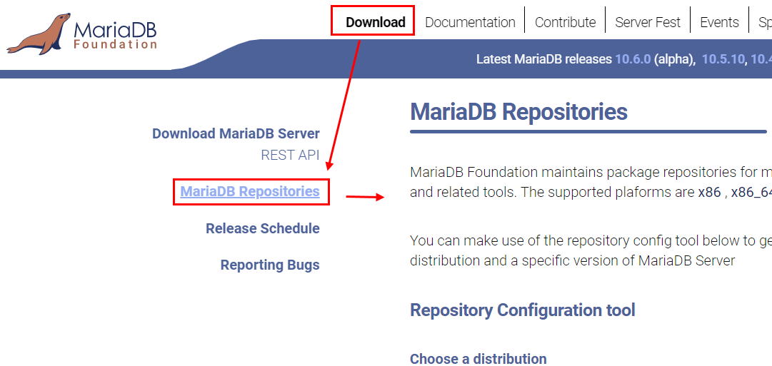 MariaDB 공식 홈페이지에 접속 > Download > MariaDB Repositories 선택