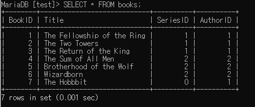 > SELECT * FROM books;