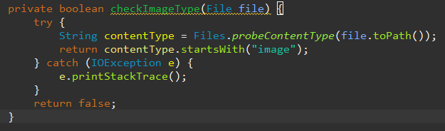 업로드되는 파일이 이미지 타입인지 검사하는 메서드를 추가합니다.