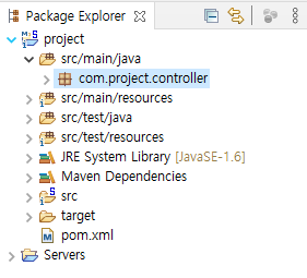 프로젝트명을 정의하고 패키지명은 다음과 같은 명칭으로 정의합니다. com.project.controller (달라도 됨)