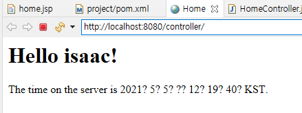 Eclipse 브라우저에 http://localhost:8080/controller/ 라는 URL이 실행됩니다.