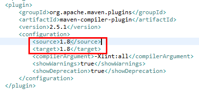 pom.xml의 <plugin> 태그 중 maven-compiler-plugin의 내용을 1.8로 수정합니다.