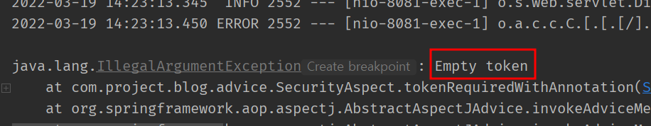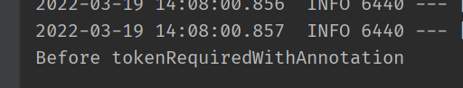 접속 URL이 http://localhost:8080/으로 들어오는 경우에 @TokenRequired를 걸어두었으니, 위에서 설정한 aop로 로그를 출력하는 것을 확인할 수 있을 것이다.