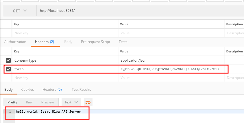 header에 token을 담아서 @TokenRequired 어노테이션을 사용하는 메서드를 호출하면 다음과 같이 정상적인 return 메시지를 받을 수 있다.