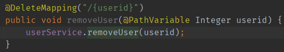 UserController : removeUser()
