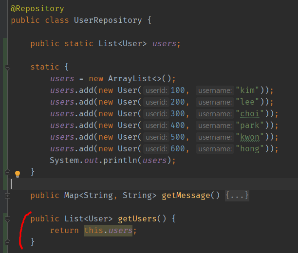 UserRepository : getUsers()