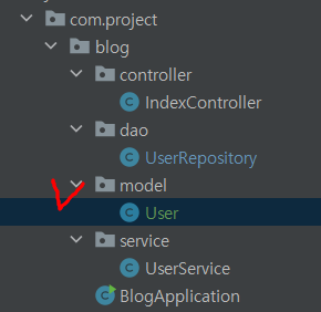 CRUD의 대상이 될 Model을 담당하는 DTO/VO를 생성한다. : User class