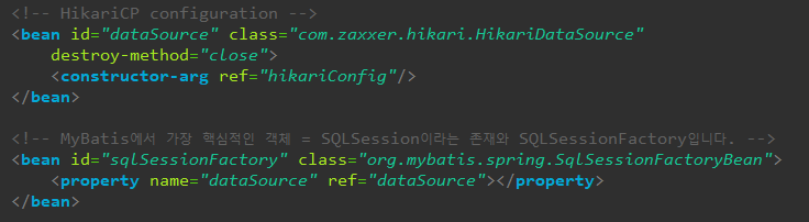 root-context.xml에서는 아래와 같은 형태로 작성합니다.