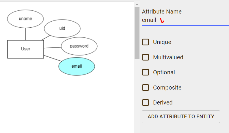 오른쪽 메뉴창에서 [ADD ATTRIBUTE]를 선택해서 개체에 해당하는 속성을 추가할 수 있습니다.