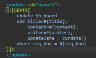 BoardMapper.xml에 update 쿼리문 추가 (둘 다 사용 가능)