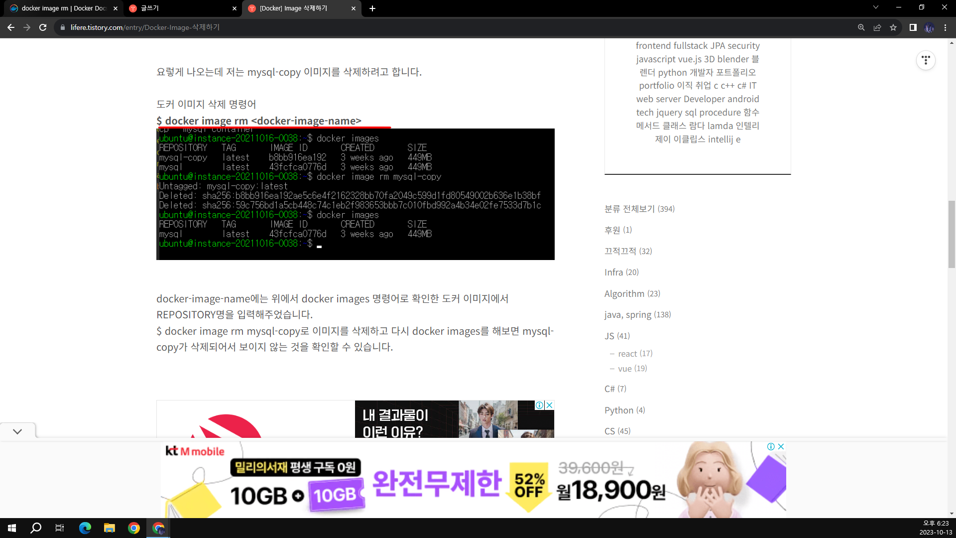 기분 나쁘게 댓글 달고 튀지 맙시다. 조금은 감정적인 글 주의 기분 나쁘게 댓글 달고 튀는 사람 너무 싫다. 길 가다가 나자빠져서 코 깨지고 무릎 깨졌으면 좋겠다. 내가 작성했던 글 중에 Docker Image 삭제하기 관련된 글을 올린 적이 있다. 해당 글에서 도커 이미지 삭제 명령어를 $ docker image rm 으로 표현을 했었다. 그런데 오늘 댓글로 rm은 컨테이너 삭제고, rmi는 이미지 삭제라고 하면서 제대로 알고 올리고, 좋아요고 나발이고 라는 표현을 하면서 댓글을 달았다. 확인해보려고 하니 댓글을 삭제했다. 그래서 내가 잘못 써서 올린건가 싶어서 내가 쓴 글을 다시 확인했다. 그리고 다른 사람들 글도 확인했다. 다른 사람들의 블로그에는 보통 docker rm 혹은 docker rmi라는..